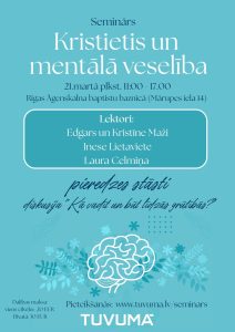 Šī gada 21. martā no plkst. 11.00 aicinām uz interaktīvu semināru ”Kristietis un mentālā veselība”, ko organizē nodibinājums “Kristīga dzīvesveida izpētes fonds” un medijs Tuvumā.lv.